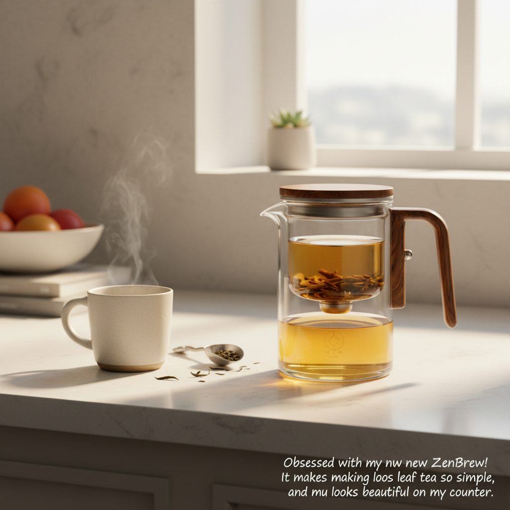 Effortlessly brew your favorite teas with a simple press. The ZenBrew combines elegant Japanese-inspired design with intuitive functionality for a perfect cup, every time.
